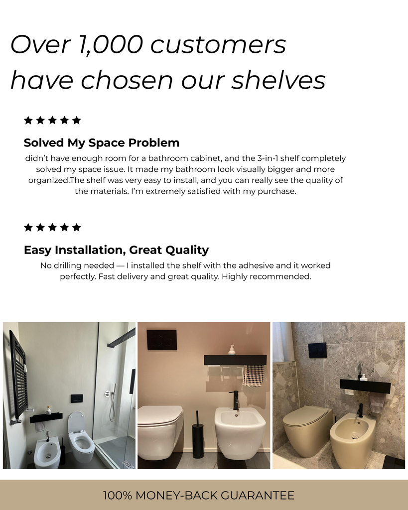All our shelves come with adhesive pads (➕50 $) and screws & plugs, so you can choose the best option 🔧✨
